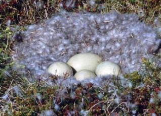 このようにアイダー鳥にとってはとても貴重な羽毛ですが年に一度の産卵時にはメス鳥が自らのダウンを抜き取って巣づくりをします。この抜群の暖かさの羽毛につつまれそして母鳥に抱かれてヒナたちが元気に孵化できるのです。