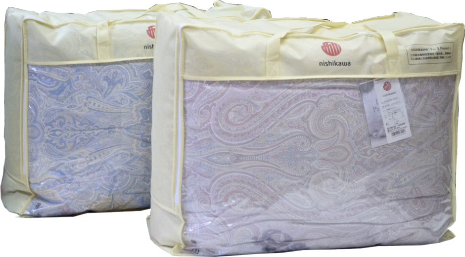 お届けしたときの収納袋に、同じように畳んで収納保存するようにしてください。