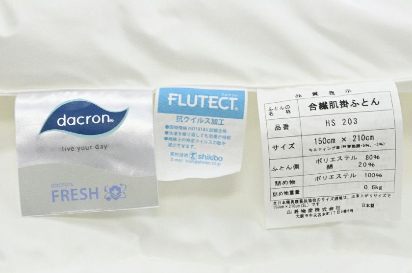羽毛タッチ・ノンアレルギーダクロン布団に、フルテクト抗ウイルス加工が加わりました。